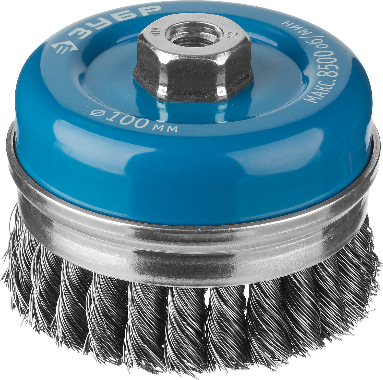 ЗУБР 100 мм, М14, жгутированная стальная проволока, 0.5 мм, Щетка чашечная усиленная, Профессионал (3527-100)