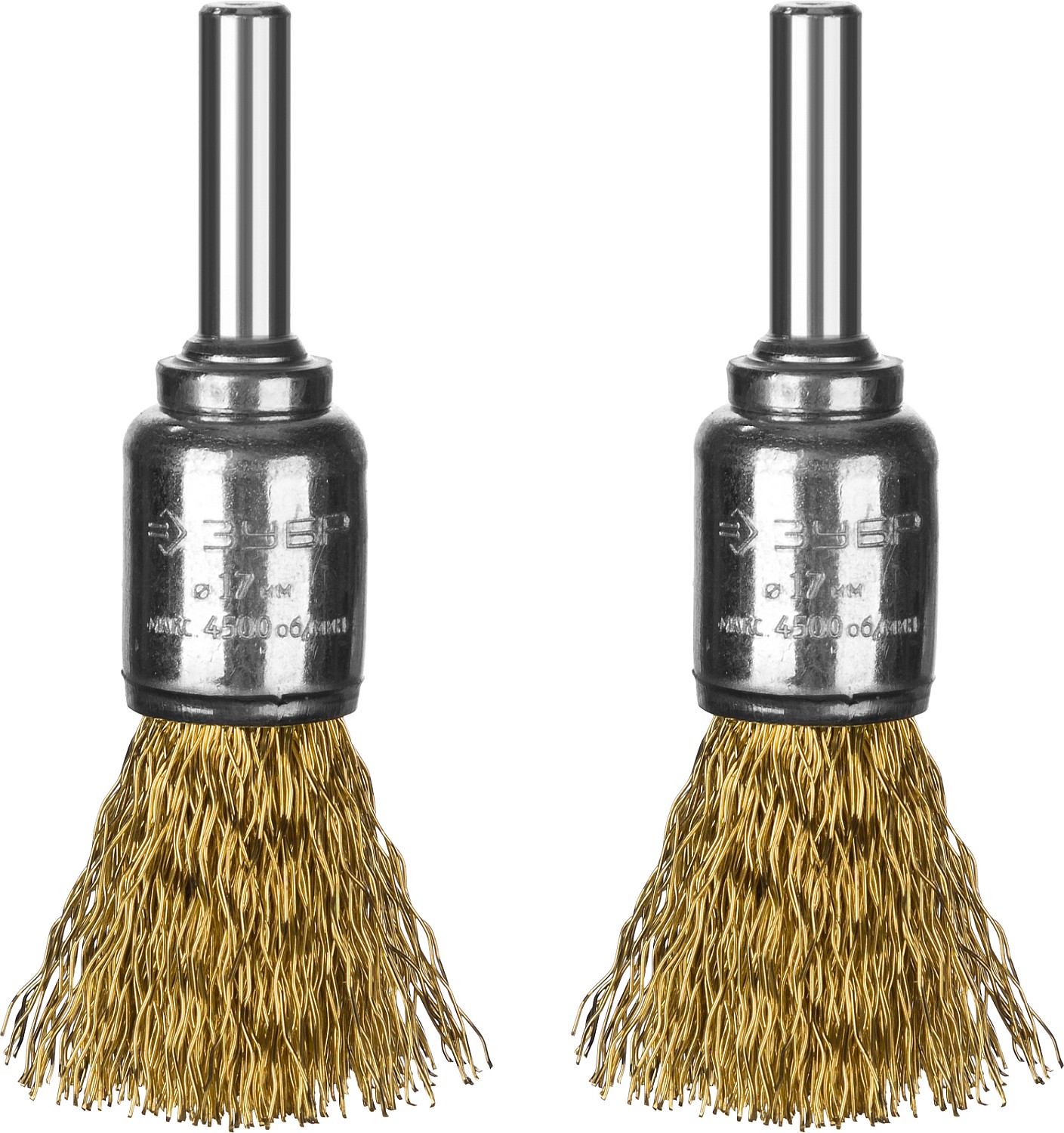 ЗУБР 2 шт., 17 мм, витая латунированная стальная проволока, 0.3 мм,Щетка кистевая Набор щеток-крацовок кистевых, Профессионал (35225-17-H2)