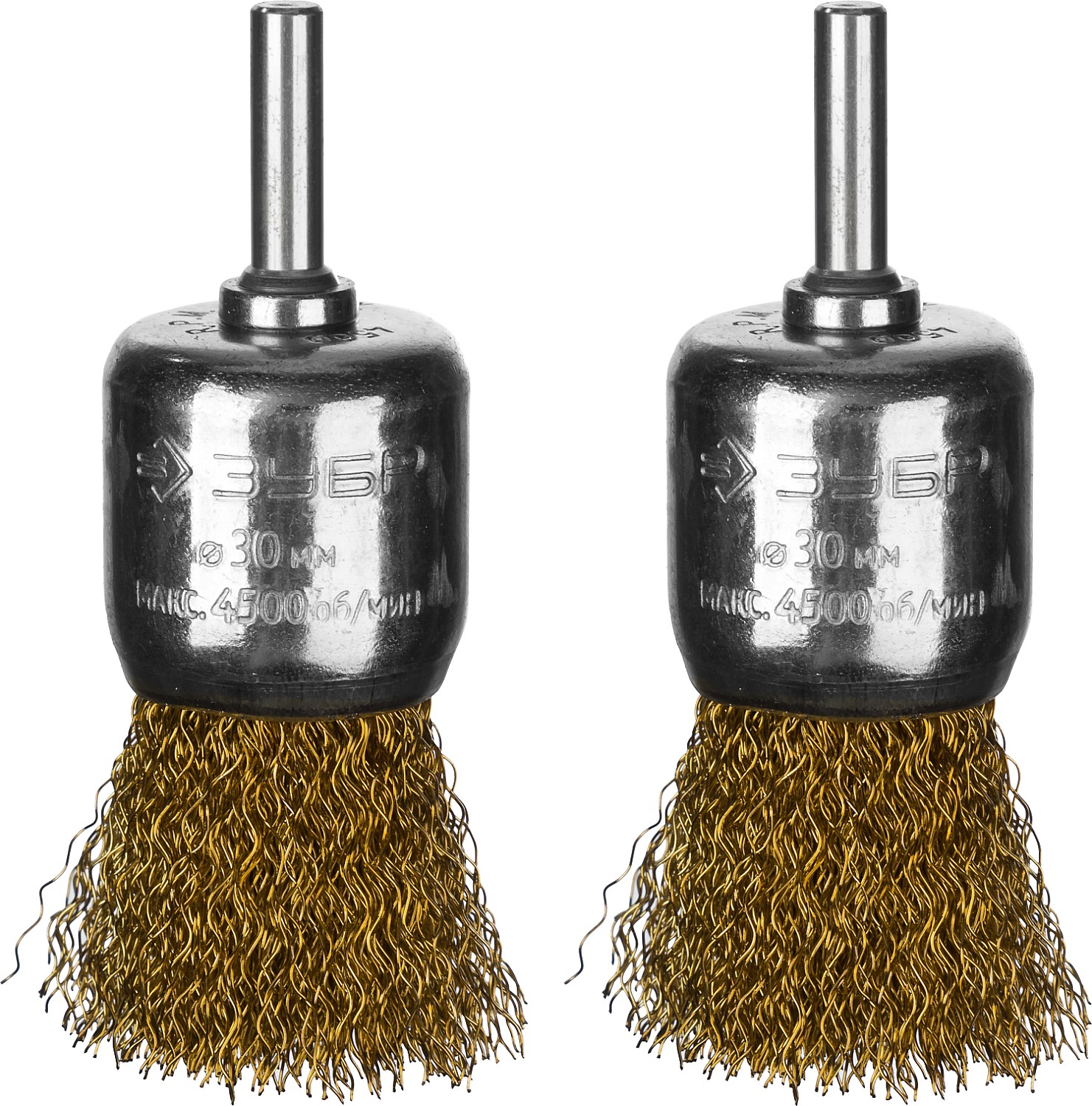 ЗУБР 2 шт., 30 мм, витая латунированная стальная проволока, 0.3 мм, Набор щеток-крацовок кистевых, Профессионал (35225-30-H2)