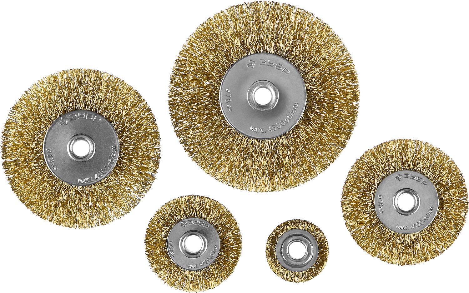 ЗУБР 5 шт., 25/40/55/63/78 мм, витая латунированная стальная проволока, Набор щеток крацовок дисковых, Профессионал (3521-H5)