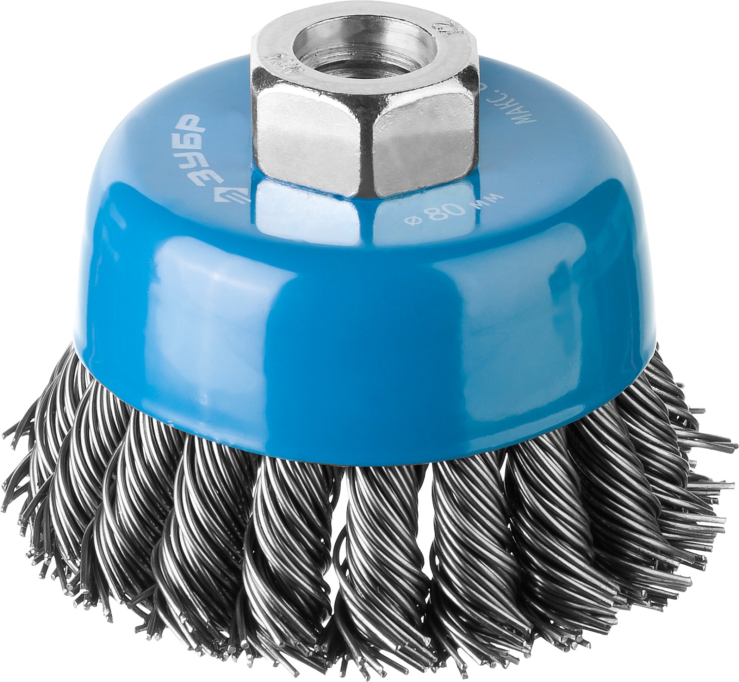 ЗУБР 80 мм, стальная проволока, 0.8 мм, Щетка чашечная, Профессионал (35277-080)